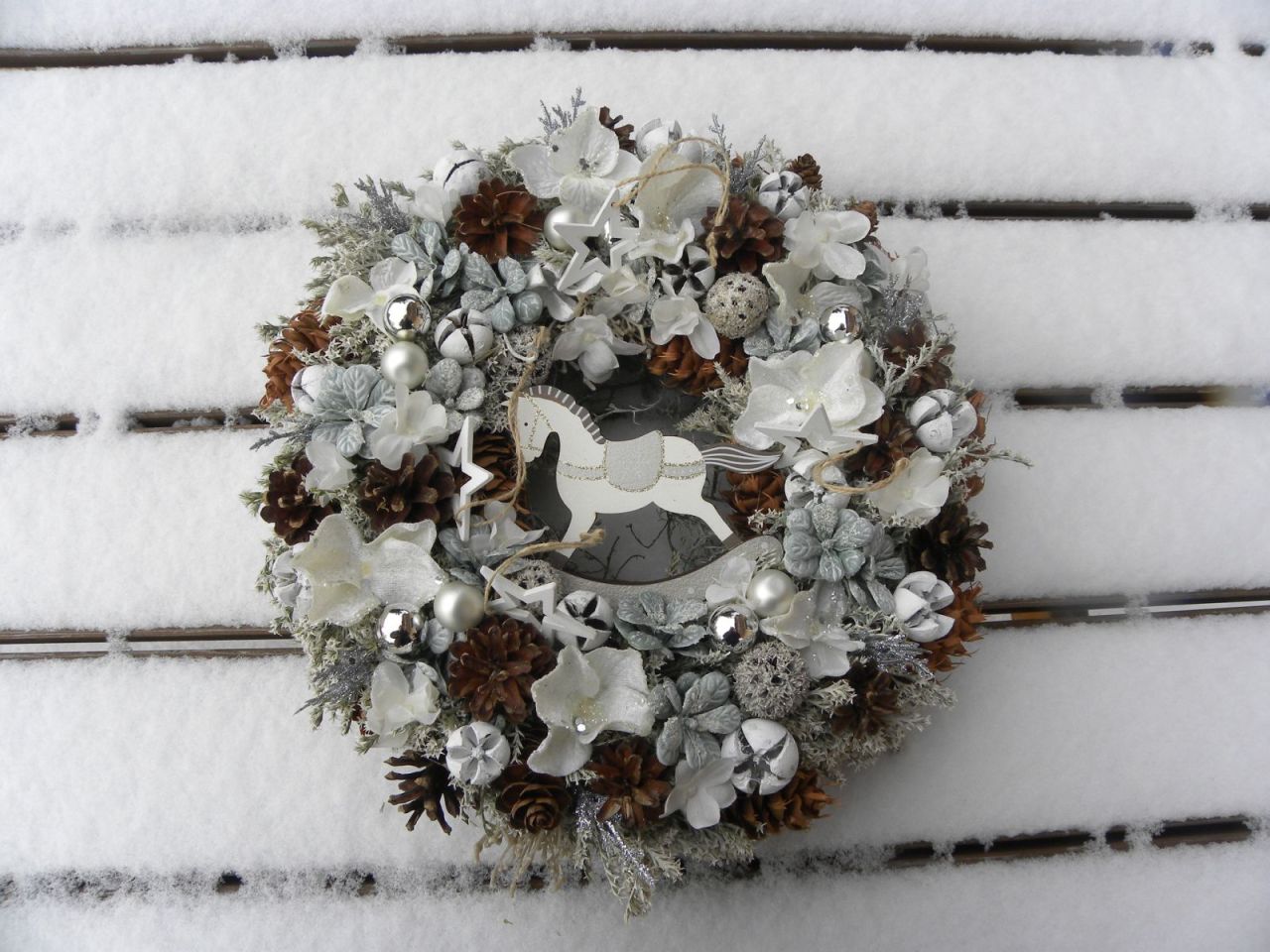 ![]() | bohatý trvanlivý věneček, sušinový základ přizdobený přírodninami, floristickými doplňky a skleněnými ozdobami, průměr cca 33 cm, začištěný slámový základ, vzadu očko na pověšení 649.00 Kč