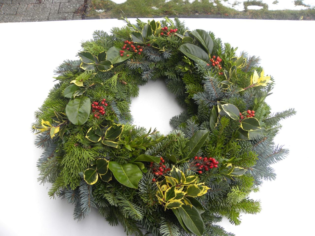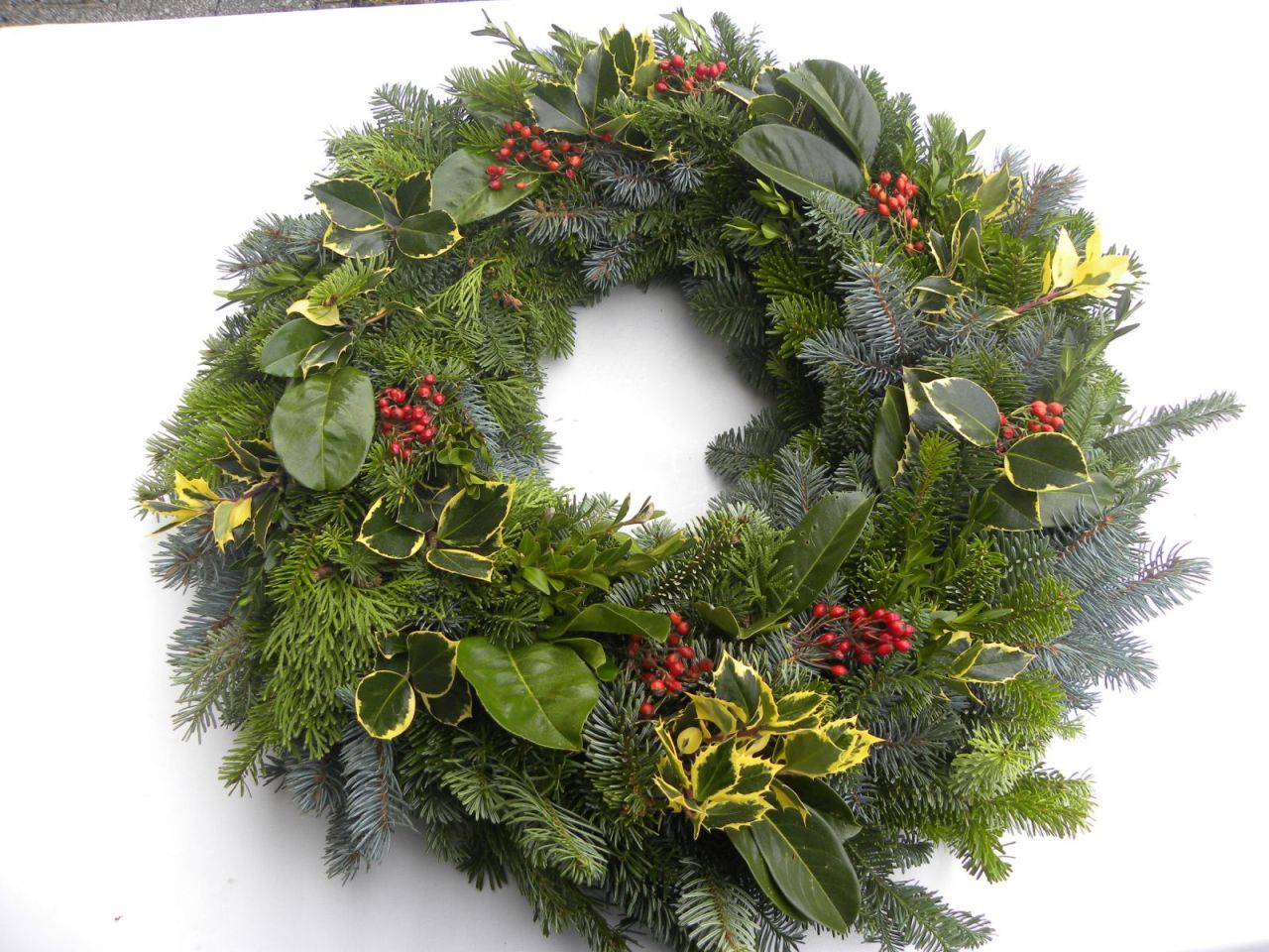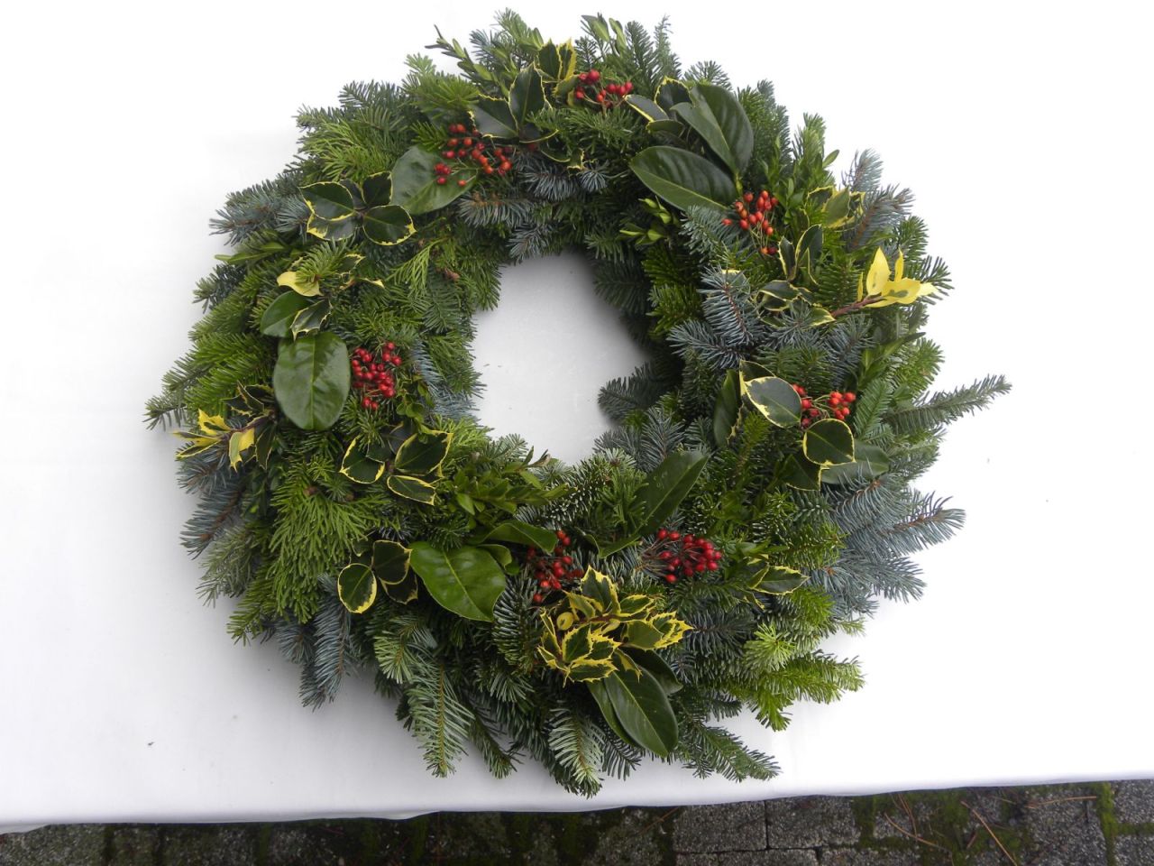 | velký věnec z několika druhů přírodního chvojí ( jedle nobilis, jedle kavkazská aj.), cesmíny a šípků, průměr cca 60 cm, k dalšímu dozdobení nebo jen tak, efektní a působivý 798.00 Kč