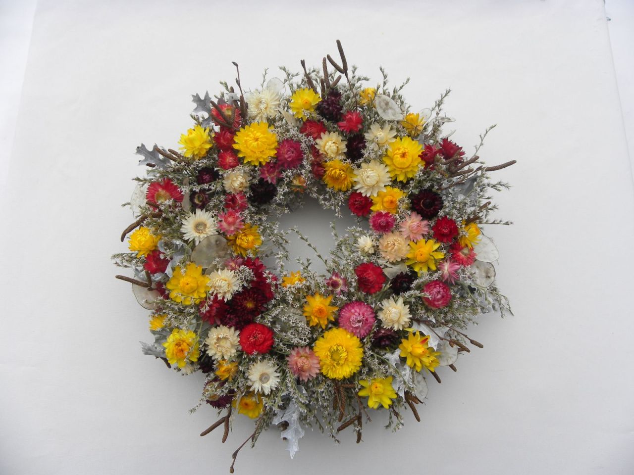 | veselý přírodní věnec ze sušiny a slaměnek, průměr cca 38 cm, začištěný základ, očko vzadu 569.00 Kč