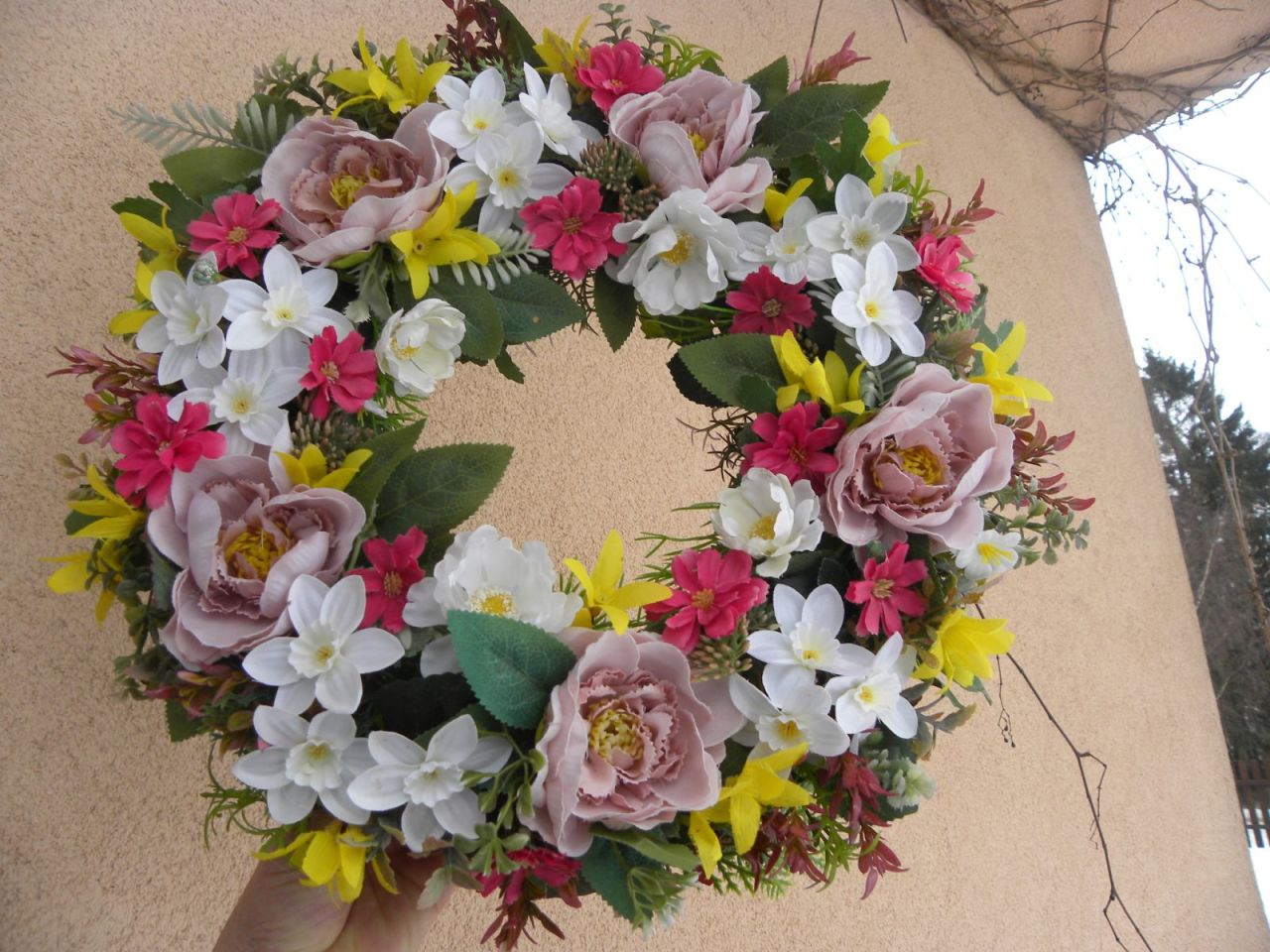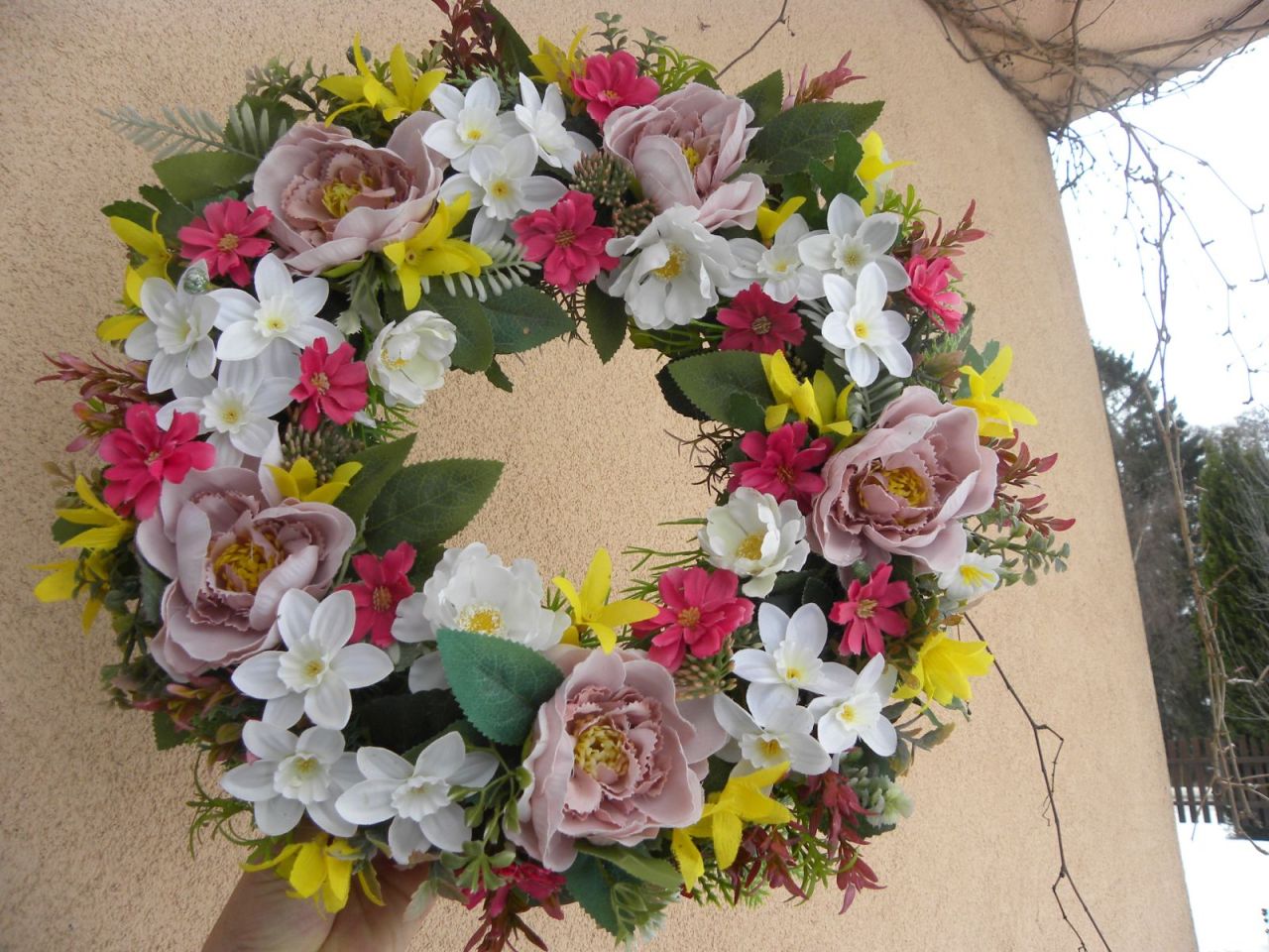 | Tenhle nepřehlédnete ... Velký bohatý nadýchaný věnec z krásných trvanlivých materiálů, které jen tak neoprší ... 649.00 Kč