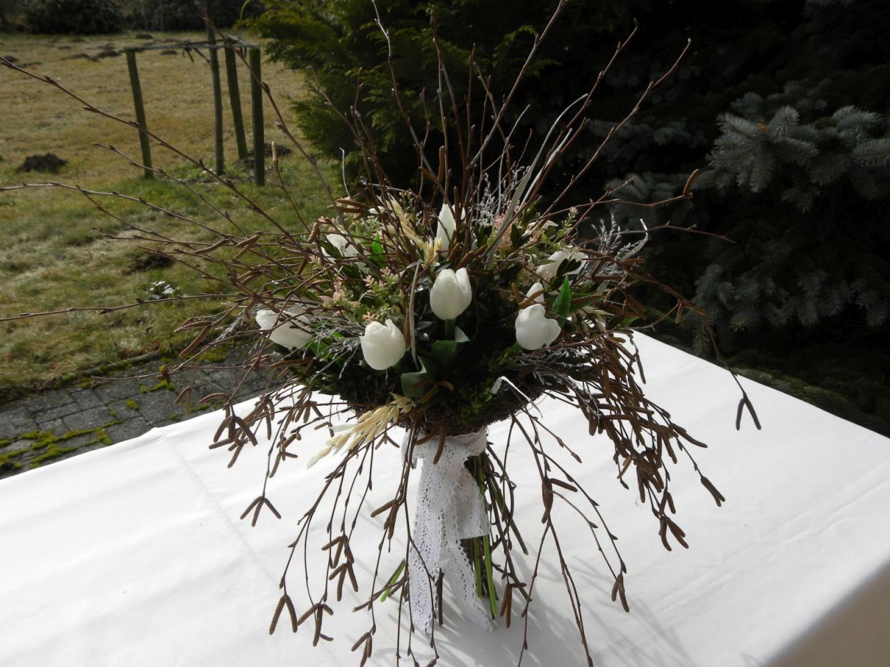 březová kytka s tulipány