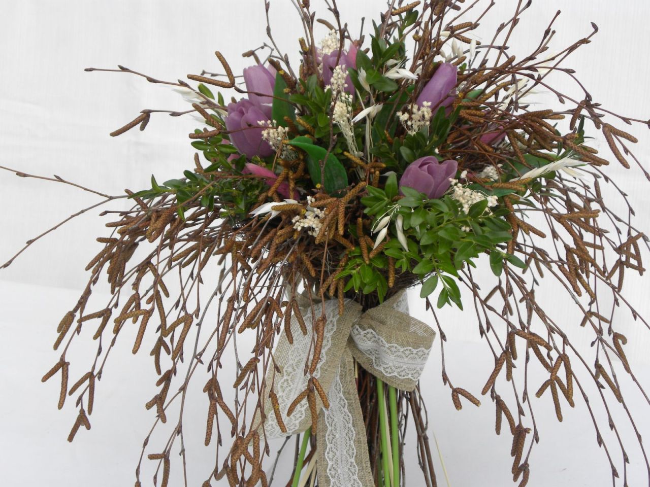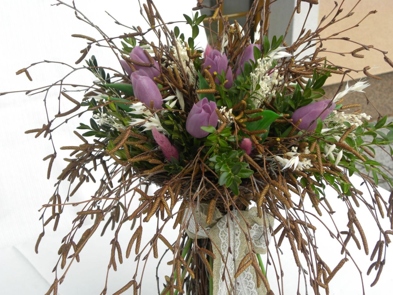 březová kytka s tulipány